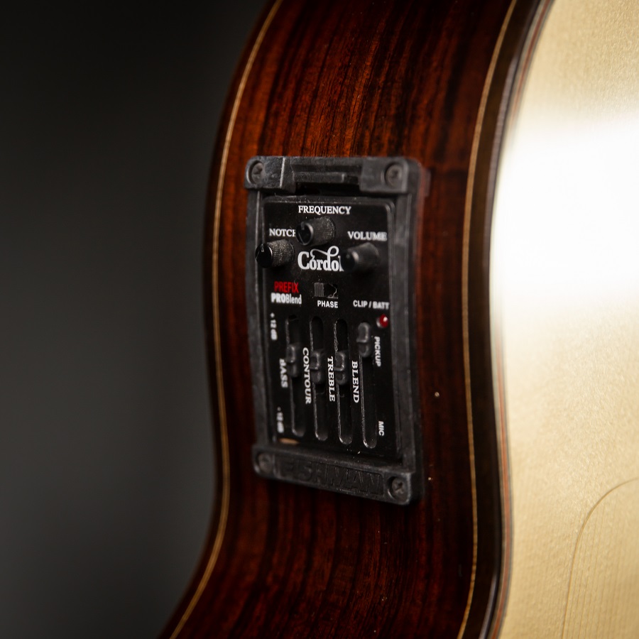 กีตาร์คลาสสิคไฟฟ้าตัวนี้มาพร้อมภาคไฟฟ้า Fishman Prefix Pro Blend ทำให้กีตาร์สายเอ็นนั้น ใช้งานบน Stage ได้อย่างยืดหยุ่นมากกว่าเดิม และมาพร้อมกับ Hardcase อีกด้วย