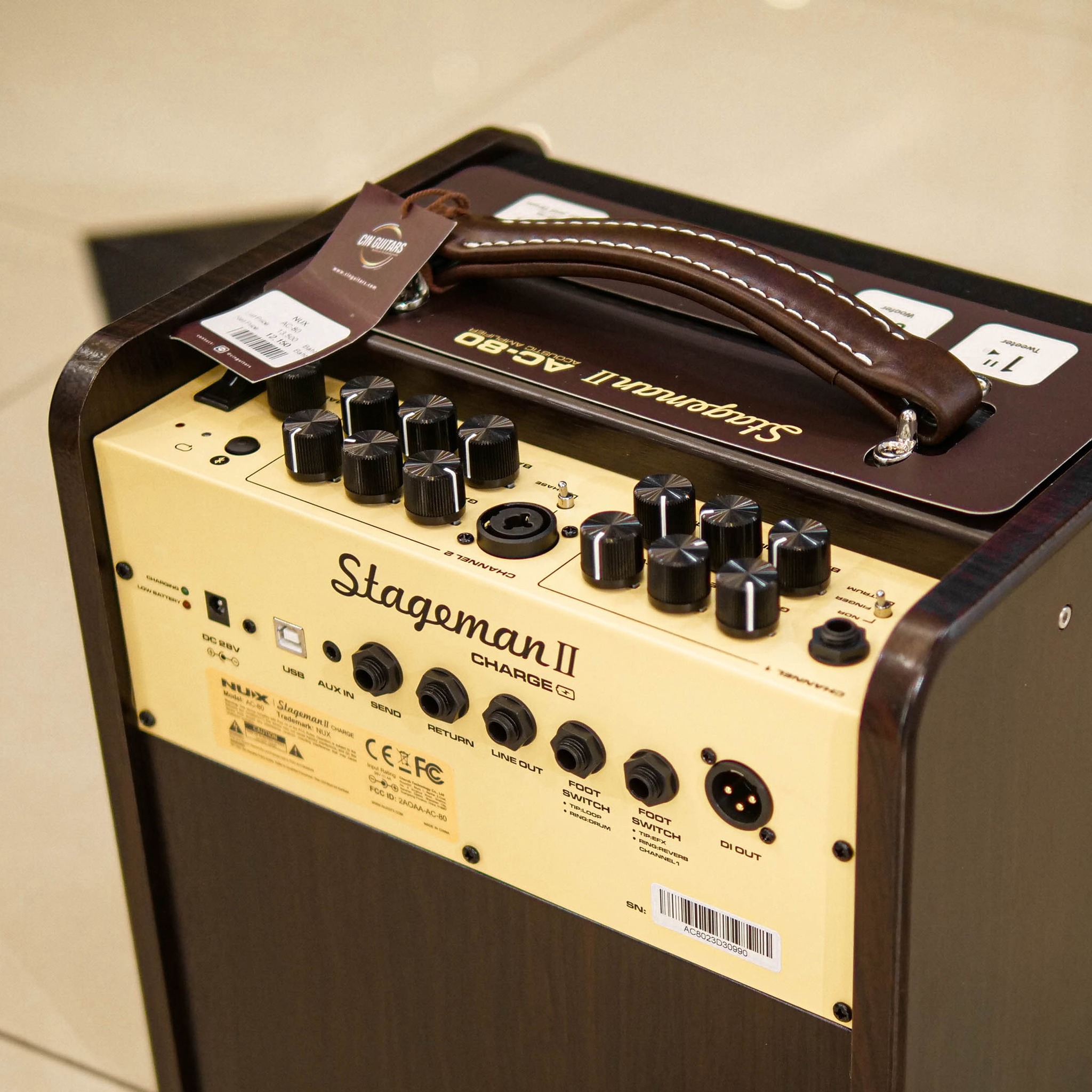 แอมป์กีตาร์ฟีเจอร์สุด Modern ร้อง เล่น อัดเสียง ครบ ในงบหมื่นต้นๆเท่านั้น Nux AC80 Stageman II แอมพลิฟายเออร์ 2 channels 80watt ที่ออกแบบมาเพื่อรองรับกีต้าร์และไมโครโฟน สามารถใช้งานในสถานการณ์ได้หลากหลายทั้งการแสดงคอนเสิร์ต การบันทึกเสียงในสตูดิโอ ด้วยเทคโนโลยี DSP ทำให้ได้เสียงที่เป็นธรรมชาติ