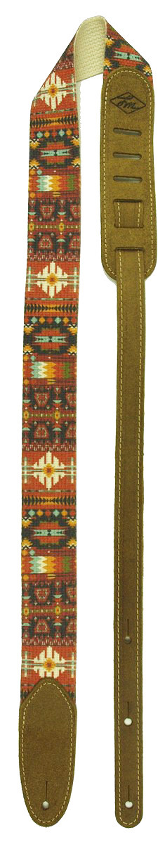 Southwestern-inspired designs in an incredibly comfortable, strong, and stylish guitar strap The center sections are made from light yet durable 2" wide cotton Deep dyed multi-color southwestern patterns LM-exclusive rugged distressed leather end tabs with suede reinforcement Weave-style tail to adjust length from 44” – 60”