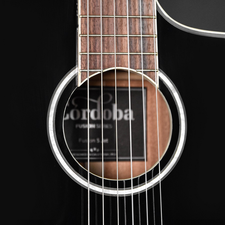 Cordoba Fusion 5 "Jet Black" กีตาร์โมเดล Hybrid Classical สเปค Top Solid (Sitka Spruce / Mahogany)