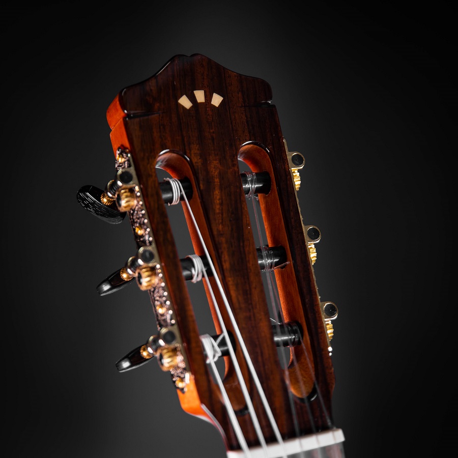 ตัวกีตาร์จะติดมากับ Golpeador หรือ Tap Plate ที่คนไทยชอบเรียกว่า "ปิ๊กการ์ดใส" ช่วยป้องกันไม้หน้าไม่ให้เป็นแผล จากสไตล์การเล่นที่หนักหน่วงผสมการเคาะ เลือกใช้ไม้หน้าเป็น Solid European Spruce ไม้ตระกูลสปรูซที่มีคาแร็คเตอร์เสียงแบบ smooth and precise ราคาสูงกว่าไม้ชนิดอื่นในตระกูลเดียวกัน จับคู่กับไม้ Cypress ที่เป็น original สำหรับกีตาร์ฟลาเมงโก้โดยเฉพาะ โดยจะมีลักษณะเป็นไม้เนื้ออ่อนโปร่งเบาแต่แข็งแรง เสียงเด่นในย่านแหลมกังวาลสดใส เสียงที่เกิดจากการเคาะกึกก้องน่าฟังกว่าไม้ชนิดอื่น