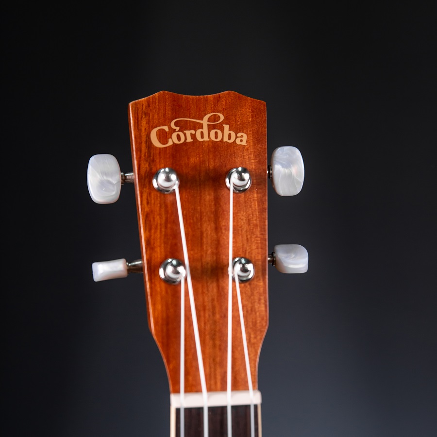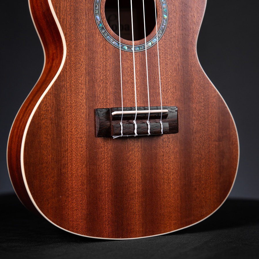 อูคูเลเล่ไซส์ Concert รุ่นเริ่มต้นที่ครบเครื่องทั้งเรื่องเสียงและความสวยงาม งานประณีตทั้งตัวสเปค All Mohogany เสียงอิ่มลงตัว และเพิ่มความสวยงามด้วย pearl จูนเนอร์ Albalone Rosette และ Satin finish มาพร้อมสายคุณภาพสูงจาก Aquila strings